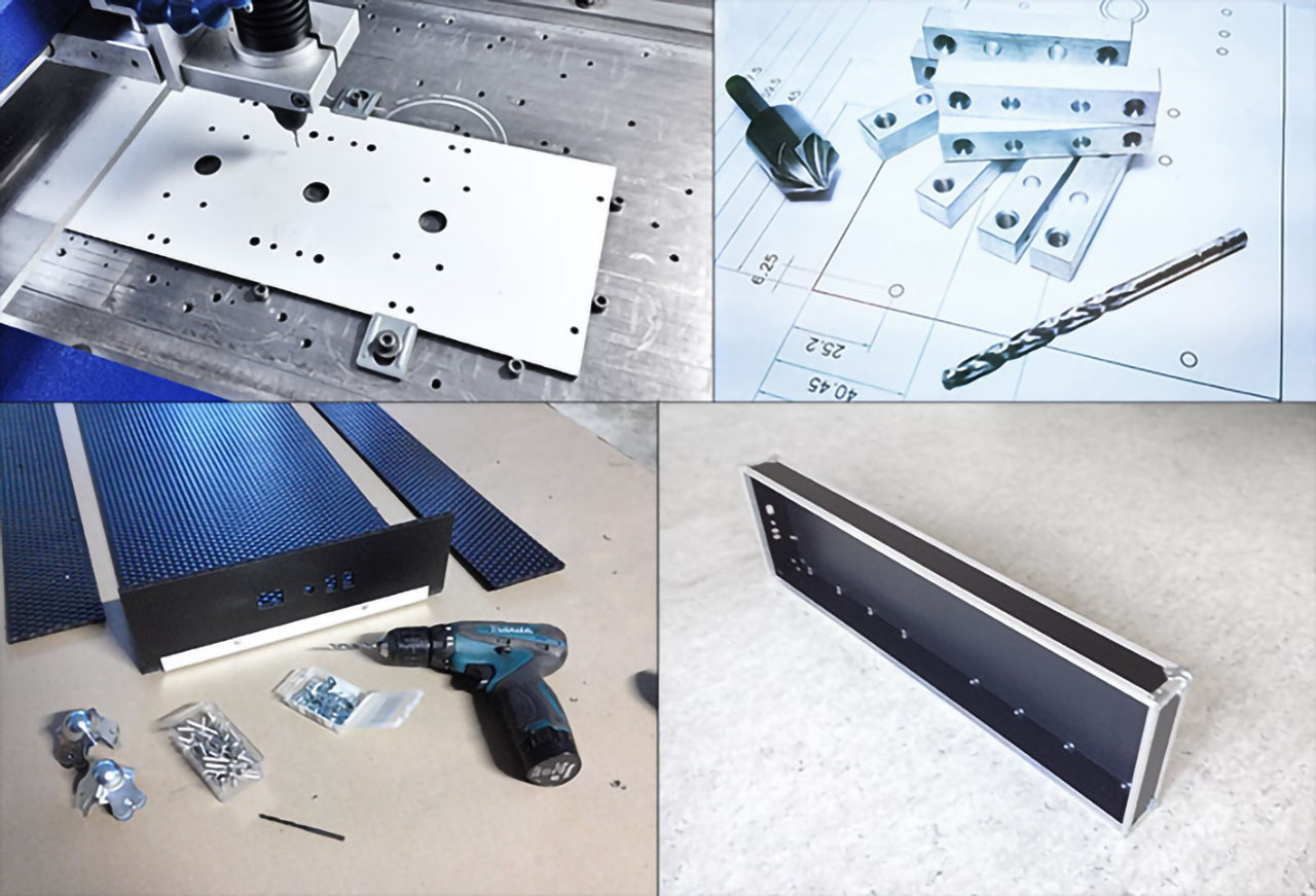 Materials for the Flightcase: aluminum profiles, detachable hinges, blind rivets, … check any flightcase online-shop they have great stuff if you want to build your own flightcase